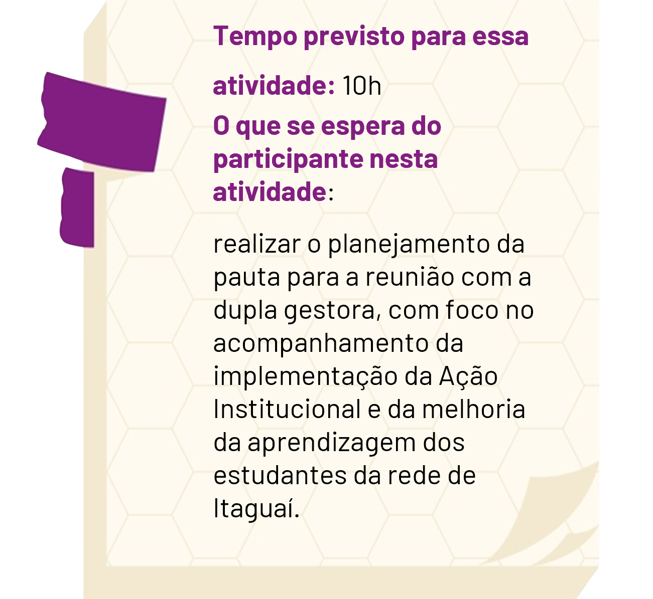 Nosso convite é para que vocês façam o planejamento da pauta para a realização de uma reunião com a dupla gestora (diretor e articulador) retomando as etapas para implementação da Ação Institucional, apoiando e acompanhando o Plano de Ação feito pela dupla para que a ação institucional seja implementada.