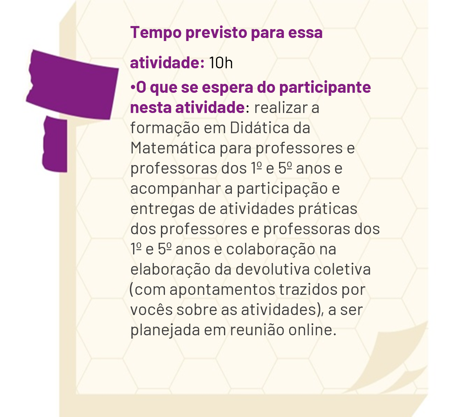 - Acompanhamento da participação e entregas de atividades práticas dos professores e professoras dos 1º e 5º anos e colaboração na elaboração da devolutiva coletiva (com apontamentos trazidos por vocês sobre as atividades), a ser planejada em reunião online.
